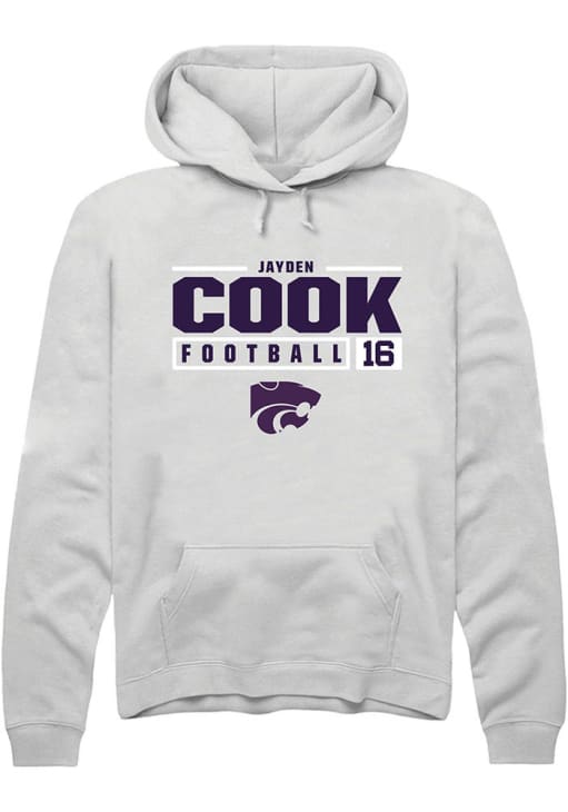 Jayden Cook Rally Mens White K-State Wildcats NIL Stacked Box Hooded Sweatshirt