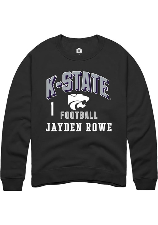 Support your K-State Wildcats and favorite Jayden Rowe in this K-State Wildcats Mens Black Football NIL Arch Logo Player Crew. This Crew Sweatshirt features a NIL graphic, and is sure to stand out in the stadium. Perfect to wear on game day or any day!
