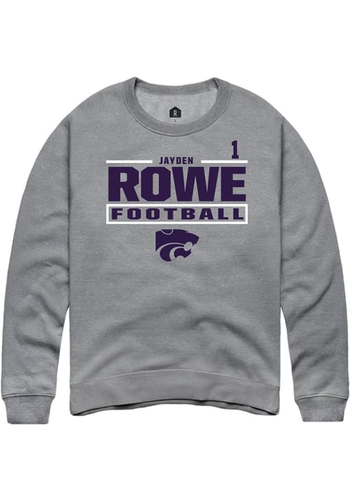 Support your K-State Wildcats and favorite Jayden Rowe in this K-State Wildcats Mens Graphite Football NIL Stacked Box Player Crew. This Crew Sweatshirt features a NIL graphic, and is sure to stand out in the stadium. Perfect to wear on game day or any day!