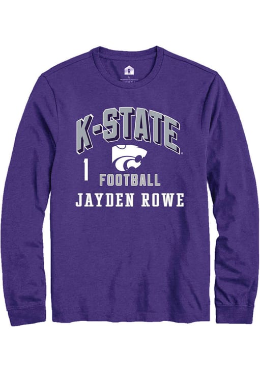 Embrace the spirit of your favorite player in this K-State Wildcats Purple Football NIL Arch Logo Jayden Rowe Long Sleeve Player Tee! This Player T Shirt features a NIL graphic, so everyone will know you cheer for K-State Wildcats, Jayden Rowe! This is the perfect Wildcats Player Tee for game days. Fear The Cats!