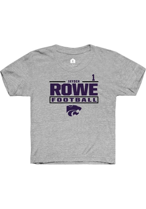 Kids, support your favorite player in this Youth Grey K-State Wildcats Jayden Rowe Short Sleeve Player Tee! This Player T-Shirt features a NIL graphic, so Jayden Rowe can feel your team spirit! This is a perfect Youth Player T-Shirt to wear either everyday or on game day. Fear The Cats!