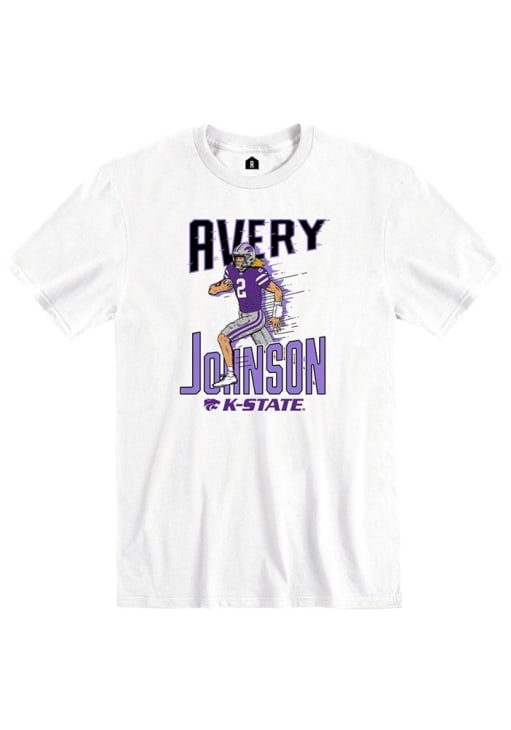 Avery Johnson Rally Mens White K-State Wildcats Football Caricature Fashion Player T Shirt