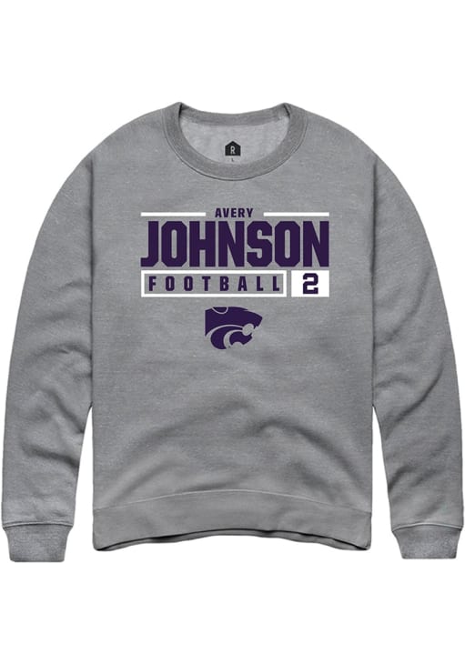 Avery Johnson Rally Mens Graphite K-State Wildcats NIL Stacked Box Crew Sweatshirt