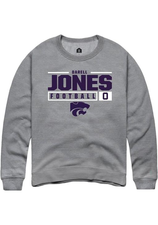 Darell Jones Rally Mens Graphite K-State Wildcats NIL Stacked Box Crew Sweatshirt