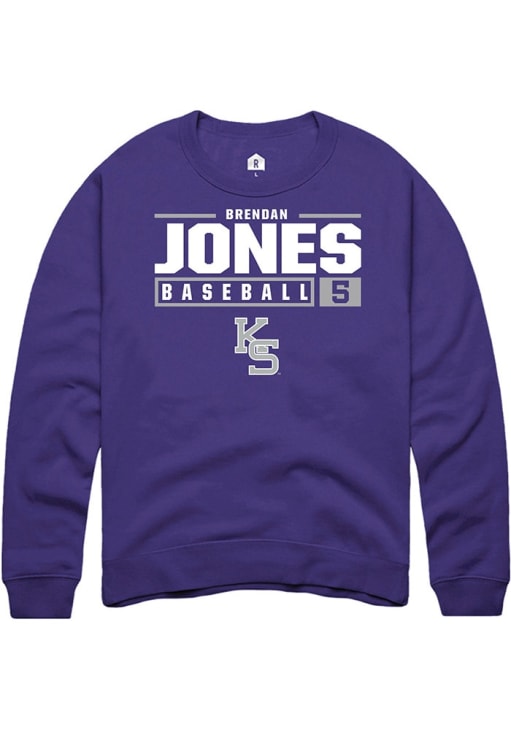 Brendan Jones Rally Mens Purple K-State Wildcats NIL Stacked Box Crew Sweatshirt