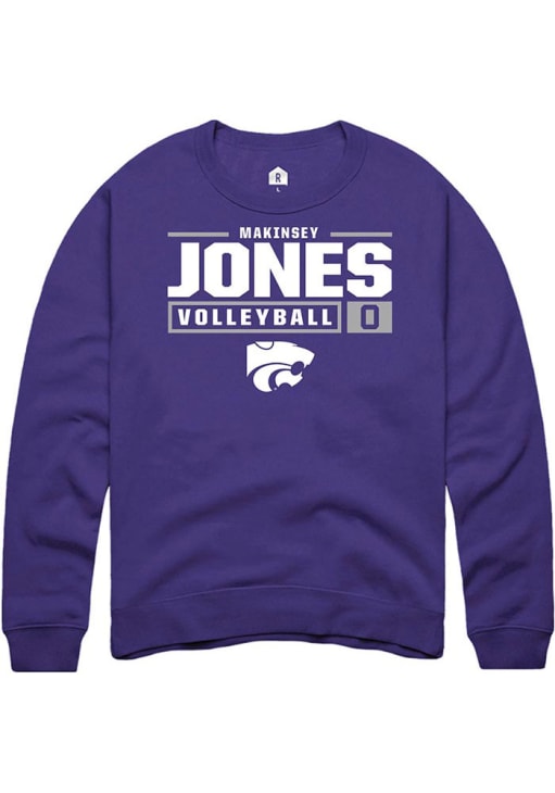 Makinsey Jones Rally Mens Purple K-State Wildcats NIL Stacked Box Crew Sweatshirt