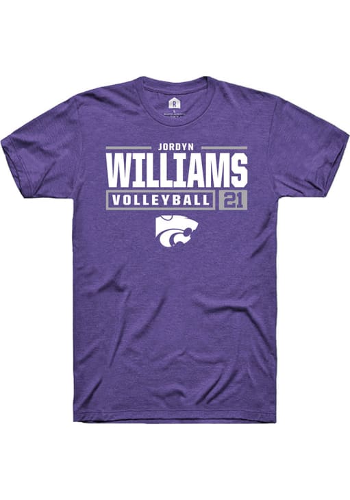 Jordyn Williams Purple K-State Wildcats NIL Stacked Box Short Sleeve T Shirt