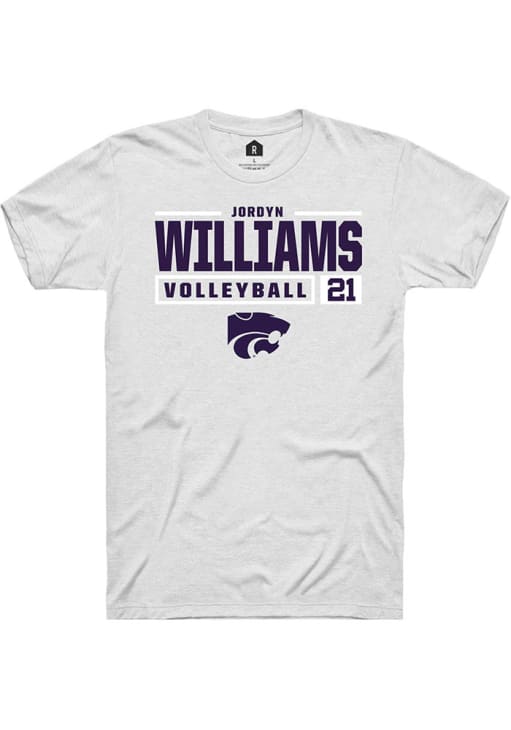 Jordyn Williams White K-State Wildcats NIL Stacked Box Short Sleeve T Shirt