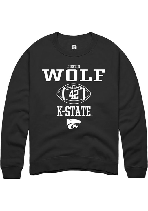 Justin Wolf Rally Mens Black K-State Wildcats NIL Sport Icon Crew Sweatshirt
