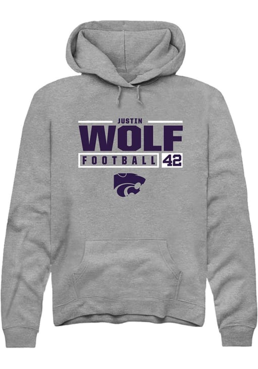 Justin Wolf Rally Mens Graphite K-State Wildcats NIL Stacked Box Hooded Sweatshirt
