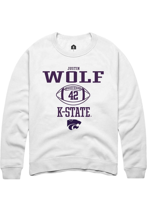 Justin Wolf Rally Mens White K-State Wildcats NIL Sport Icon Crew Sweatshirt
