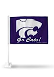 Product Details Product Details Flag measures approximately 11x14Sturdy black 19" poleWeather and UV resistantHooks onto cars/trucks/automobilesGreat way to show your team spirit!!Imported Officially Licensed This Wildcats Car Flag features a white Powercat with Kansas State University around it, attached to a black pole.