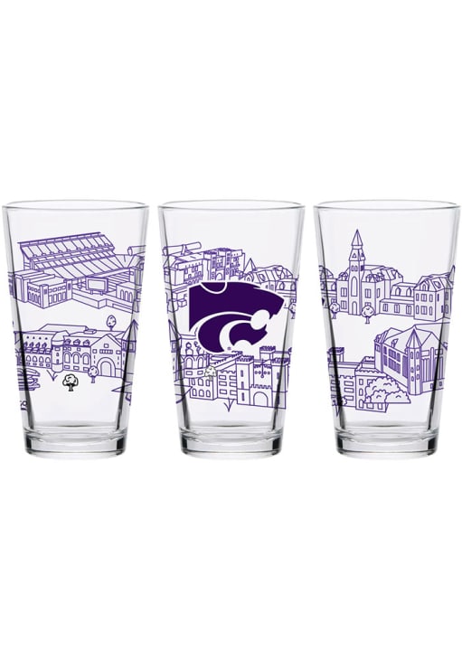 Enjoy a cold one and support your favorite team with this K-State Wildcats 16oz Campus Pint Glass. This Pint Glass features a Campus Building Design on Clear Background. Fear The Cats!