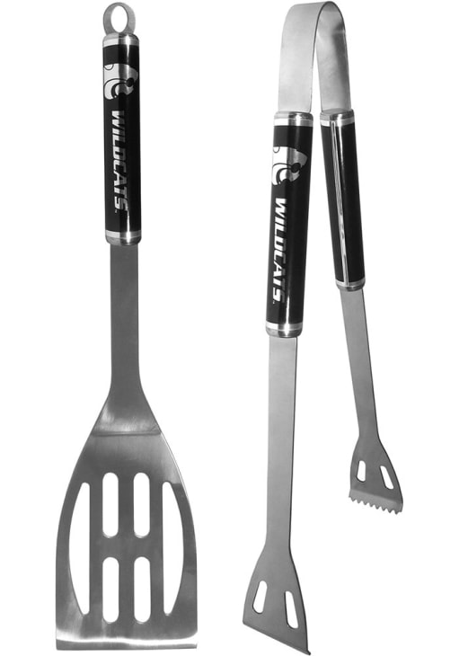 Product Details Product Details 2 piecesStainless steel tool setFeatures a spatula and tongsBlack and chrome with team graphicsThe tongs feature deep ridges for better grip Officially Licensed This K-State Wildcats Tool Set is a great way to show your Wildcats pride while grilling at the tailgate. This Tool Set features a steel spatula and tongs that are 14 inches with team graphics in a monochrome design.
