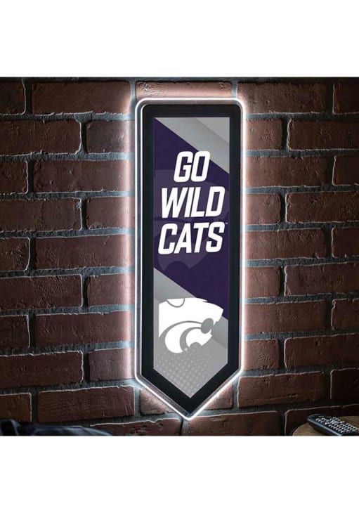 Product Details Product Details 9 x 23 x 0.25Full edge lightingFully backlighted faceplateHD digitally printed face plateOfficial team logo and colors12V/3-amp plug-in power supply Officially Licensed This K-State Wildcats 9x23 Banner Shaped Light Up Sign is great for decorating your home Wildcats team spirit. Take your team spirit to the next level with this Sign, which features a official team logo with backlighted faceplate. Fear The Cats!