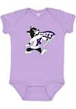 Product Details Product Details Snap closureLap shouldersScreen print graphicPerfect for any young sports fan!100% POLYESTERImport, Domestic Officially Licensed Your little Wildcats fan will look adorable in this Baby Lavender K-State Wildcats Primary Logo One Piece! This K-State Wildcats Romper features a screen print team graphic.