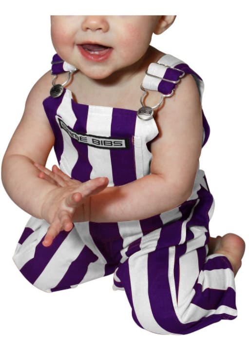 Proudly display your pride in comfort with these Purple White Baby Purple Overalls! Whether you're hitting the golf course or enjoying a leisurely day out, these stylish Striped Bib Overall are the perfect choice. With a team color bib overall, these Overalls will give you all the spirit you need!
