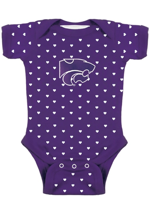 Your little Wildcats fan will look adorable in this Baby Purple K-State Wildcats Heart Print One Piece! This K-State Wildcats Romper features a heart print all over and team logo center.