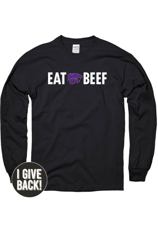 Show your K-State Wildcats spirit in this K-State Wildcats Black T Shirt! This K-State Wildcats Eat Beef Long Sleeve T Shirt makes a great layer for cooler nights cheering on the Wildcats. Featuring a "Eat Beef" with powercat logo screen printed on front chest, this K-State Wildcats Long Sleeve Tee is an essential addition for every fan. Fear The Cats!