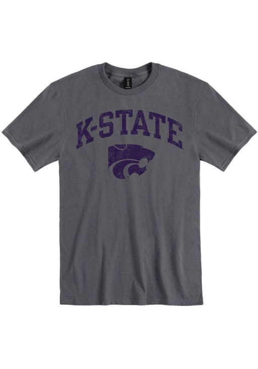 Support your K-State Wildcats in this Charcoal Short Sleeve Fashion Tee! This Distressed Arch Mascot Fashion T Shirt features a distressed screen print of K-State arched over Powercat logo on front chest. Be ready to yell "Fear The Cats" when you wear this K-State Wildcats Short Sleeve Fashion T Shirt in your favorite stadium or on the street.