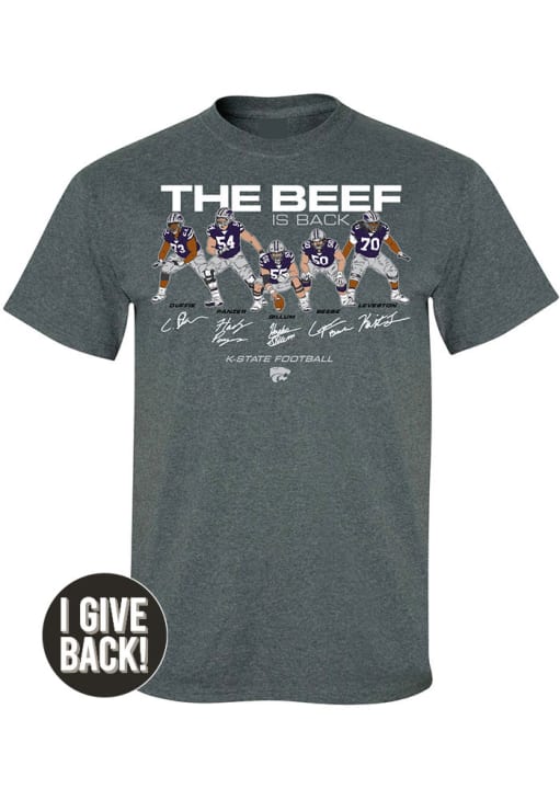 There will be no mistaking your K-State Wildcats support when you wear this K-State Wildcats Mens Charcoal Football Beef Is Back Short Sleeve! Look great and stand out from the crowd in this K-State Wildcats Player T Shirt, which features a screen print Football NIL Beef Is Back graphic on front chest.