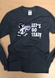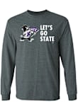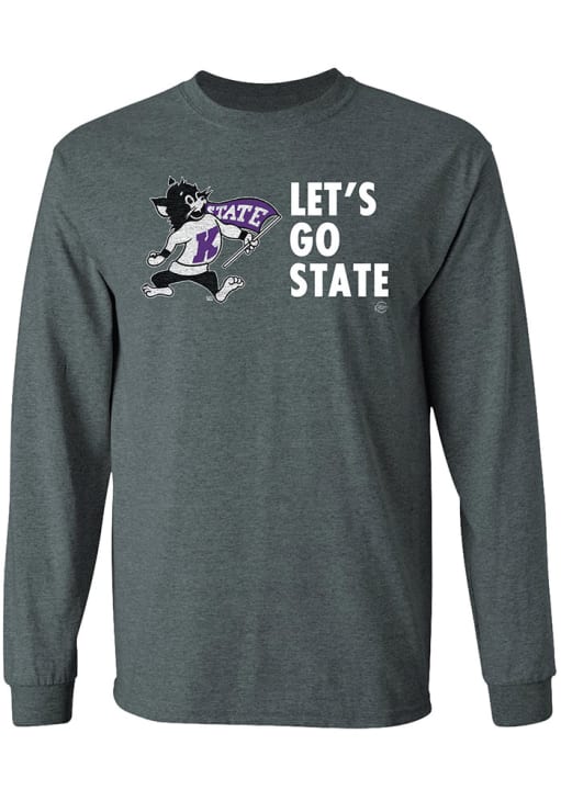 Show your K-State Wildcats spirit in this K-State Wildcats Charcoal T Shirt! This K-State Wildcats Lets Go State Long Sleeve T Shirt makes a great layer for cooler nights cheering on the Wildcats. Featuring a screen printed graphic with Willie the Wildcat, this K-State Wildcats Long Sleeve Tee is an essential addition for every fan. Fear The Cats!