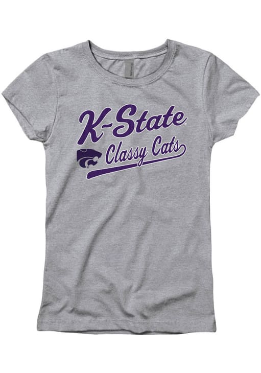Size Chart for Girls Grey K-State Wildcats Long Tail Short Sleeve T-Shirt