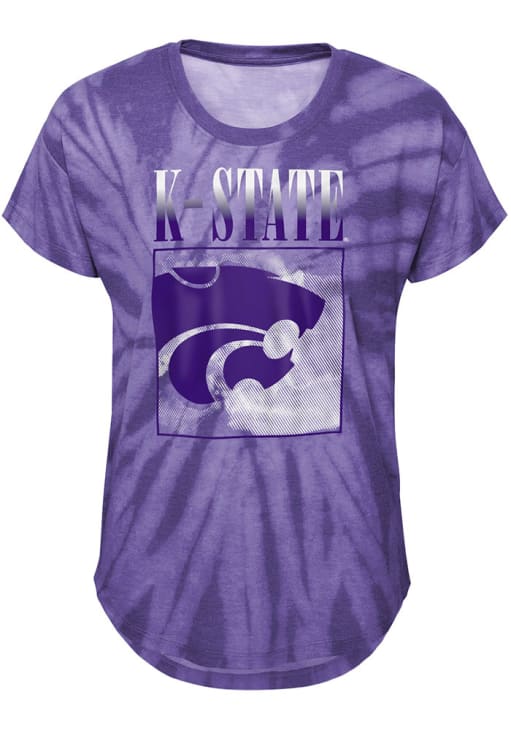 Show your support for Wildcats in this Girls Purple K-State Wildcats Short Sleeve Tee! This In The Band Tie-Dye Fashion T-Shirt features a soft hand screen print team graphic that pairs perfect with any wardrobe. Get ready to show pride for your favorite team as you cheer "Fear The Cats"