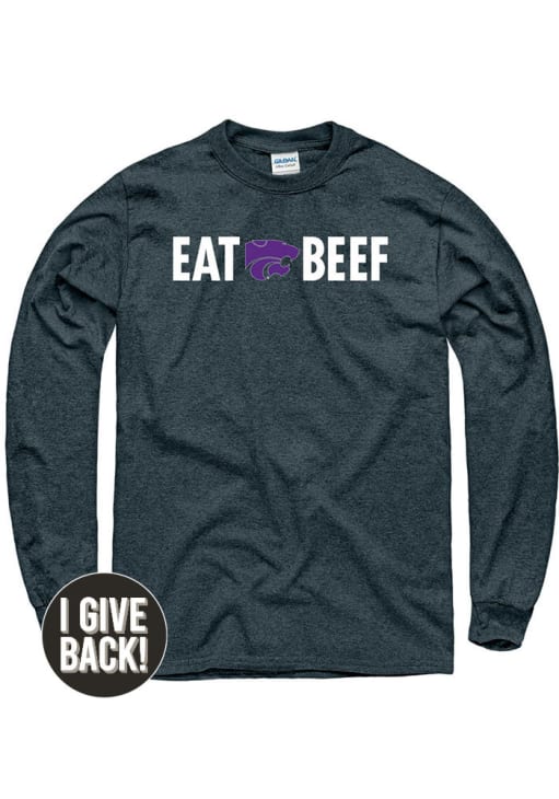 Show your K-State Wildcats spirit in this K-State Wildcats Grey T Shirt! This K-State Wildcats Eat Beef Long Sleeve T Shirt makes a great layer for cooler nights cheering on the Wildcats. Featuring a screenprint of "EAT BEEF" with Powercat logo across chest, this K-State Wildcats Long Sleeve Tee is an essential addition for every fan. Fear The Cats!