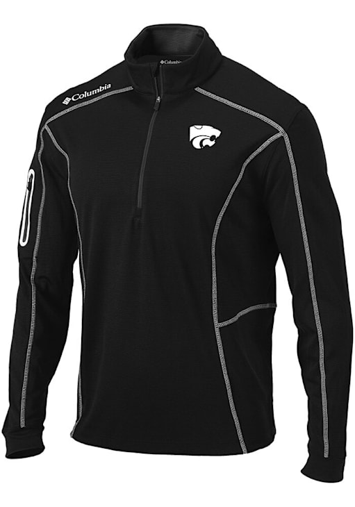Embrace the warmth and showcase your Wildcats pride with our K-State Wildcats Long Sleeve Qtr Zip Pullover. This Mens Black Heat Seal Omni Wick Shotgun Long Sleeve Pullover offers a heat seal team logo for the perfect combination of comfort and style. Elevate your everyday look with this must-have K-State Wildcats Long Sleeve Qtr Zip Pullover.