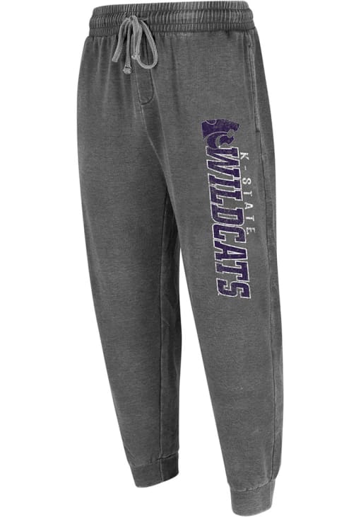 Cozy up in these K-State Wildcats Mens Charcoal Trackside Burnout Lounge Jogger Fashion Sweatpants! Whether you're lounging at home or cheering at the game, these K-State Wildcats Wildcats Fashion Sweats are a great way to show your Wildcats support in comfort. These K-State Wildcats Fashion Sweatpants feature a distressed screen print of team name and logo down left leg.