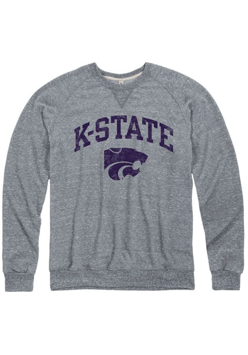 Size Chart for Mens Grey K-State Wildcats Distressed Arch Mascot Crew Sweatshirt