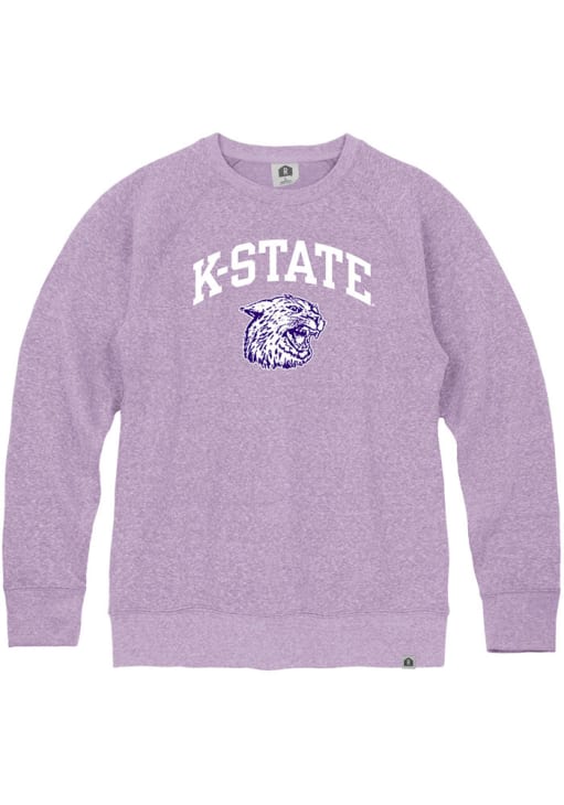 Mens K-State Wildcats Lavender Rally Triblend Vintage Arch Mascot Fashion Sweatshirt
