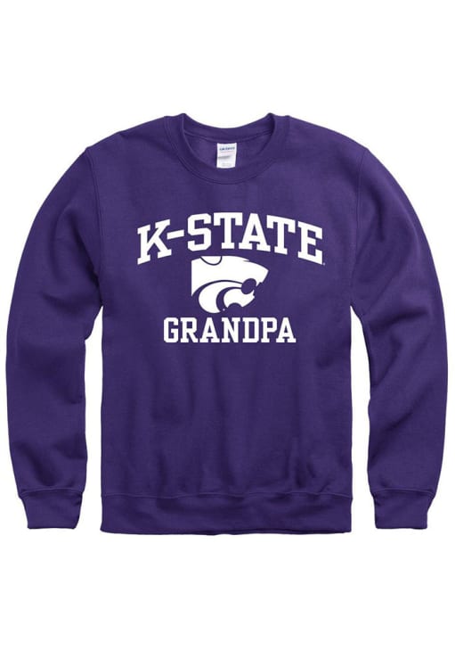 Size Chart for Mens Purple K-State Wildcats Grandpa Number One Crew Sweatshirt