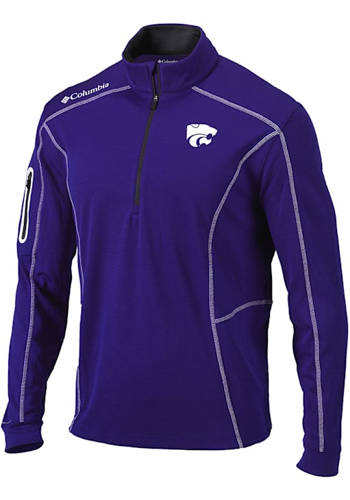 Embrace the warmth and showcase your Wildcats pride with our K-State Wildcats Long Sleeve Qtr Zip Pullover. This Mens Purple Heat Seal Omni Wick Shotgun Long Sleeve Pullover offers a heat seal team logo for the perfect combination of comfort and style. Elevate your everyday look with this must-have K-State Wildcats Long Sleeve Qtr Zip Pullover.