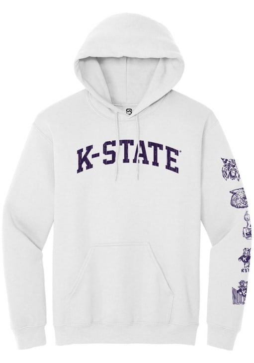 Embrace your Wildcats pride and showcase your team spirit with confidence in this K-State Wildcats Long Sleeve Hoodie! Stay warm and stylish with the K-State Wildcats Mens White Vintage Logos Down Sleeve Heavyweight Hooded Sweatshirt. Designed with screen print team graphic on front and sleeve, this Wildcats Long Sleeve Hoodie is a must-have for dedicated fans.
