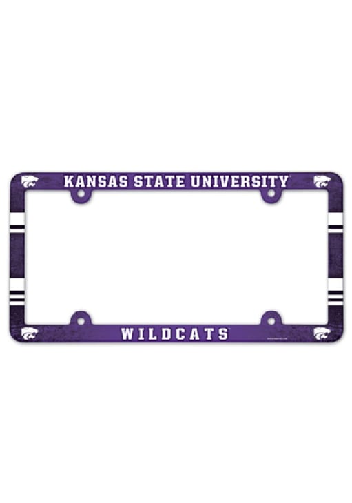 Product Details Product Details Fits any standard car license plate, front or backMolded in durable plasticHigh quality screen printed graphicsPerfect way to take your team pride on the road!PLASTICImported Officially Licensed This Wildcats License Plate Holder features a purple background with Kansas State University Wildcats.