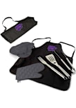 Product Details Product Details Folds into easy-to-carry toteAdjustable shoulder strapTote folds out in to apron with team logoDeluxe BBQ set stored in side3 stainless steel BBQ toolsComes with chef's hatPerfect for barbecues, picnics, and campingPolyester ToteImported Officially Licensed K-State Wildcats Apron Set will show your {Mascot Alia} pride. This Apron Set features a team logo and will look great at any tailgate. Fear The Cats!
