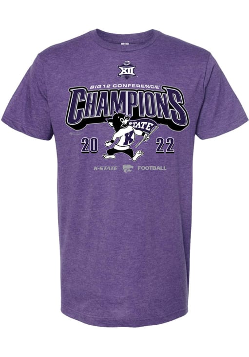 Support your K-State Wildcats in this Purple Short Sleeve Fashion Tee! This 2022 Big 12 Football Champions Design Fashion T Shirt features a screen print Kansas State Football Big 12 Champions graphic on front chest. Be ready to yell "Fear The Cats" when you wear this K-State Wildcats Short Sleeve Fashion T Shirt in your favorite stadium or on the street.