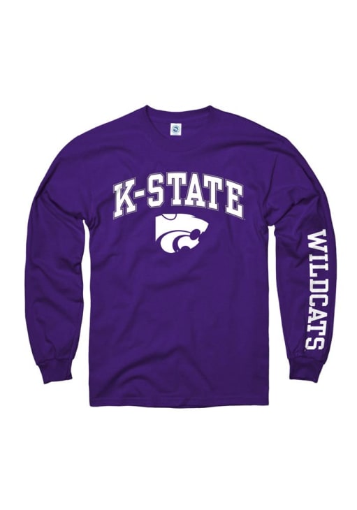 Show your K-State Wildcats spirit in this K-State Wildcats Purple T Shirt! This K-State Wildcats Arch Long Sleeve T Shirt makes a great layer for cooler nights cheering on the Wildcats. Featuring a screen printed wordmark `K-State` with the Powercat mascot on the front & `Wildc, this K-State Wildcats Long Sleeve Tee is an essential addition for every fan. Fear The Cats!
