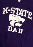 Display your team spirit with this remarkable K-State Wildcats New Agenda Purple Dad Short Sleeve T Shirt! The K-State Wildcats Short Sleeve Tee showcases a screen printed graphic that truly sets it apart. Stand out from the crowd and proudly declare your allegiance to the Wildcats with this exceptional Purple K-State Wildcats T Shirt. Fear The Cats!