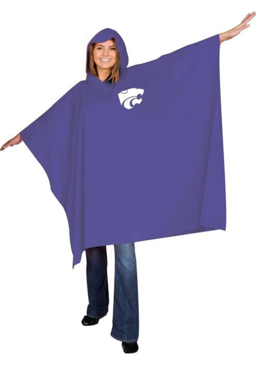 Product Details Product Details Large 52" x 86" coverage14 mm medium weightRoomy hoodOne size fits most adults!PLASTIC Officially Licensed The rain is never a problem for a Wildcats fan when you have this K-State Wildcats Purple Poncho. This Poncho features a K-State Wildcat logo.