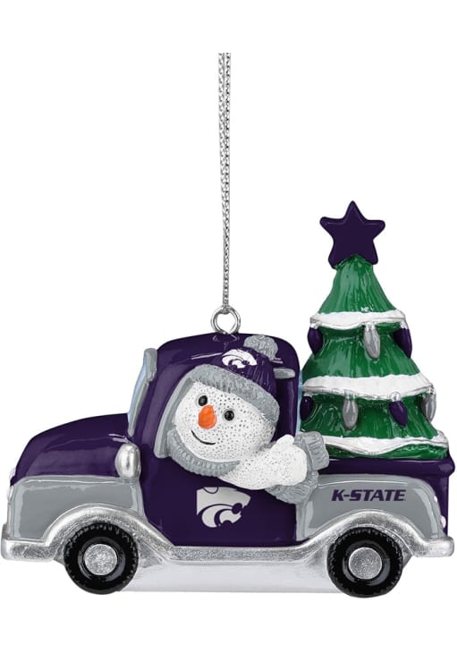 Product Details Product Details Snowman in TruckFeatures team logo and team colorsMeasures approx 3 inMakes for a great gift Officially Licensed Decorate your Wildcats tree this holiday season with this K-State Wildcats Snowman Riding Truck Ornament. This Ornament features a festive design with team colors and team logo.