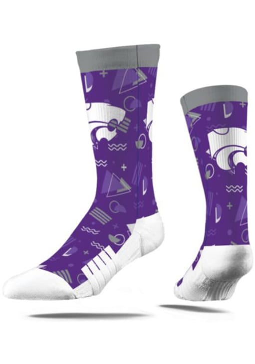 K-State Wildcats Strideline 80s Zig Zag Mens Crew Socks - Purple