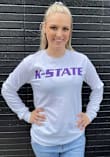 Show your K-State Wildcats spirit in this K-State Wildcats White T Shirt! This K-State Wildcats Rally Loud Long Sleeve T Shirt makes a great layer for cooler nights cheering on the Wildcats. Featuring a screenprint of "Kstate" logo on front with Powercat on back, this K-State Wildcats Long Sleeve Tee is an essential addition for every fan. Fear The Cats!