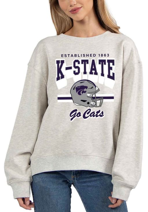Gear up for the ultimate game day experience with this remarkable K-State WildcatsWomens Ash Old school Crew Sweatshirt! Designed with the true fan in mind, this Wildcats Long Sleeve Sweatshirt features a screenprint team name and team logo on center chest. Stay warm and comfortable with this Womens K-State Wildcats Wildcats Crew Sweatshirt.