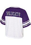 This remarkable K-State Wildcats Womens Treasure Fashion Football Jersey, showcasing a foil screen print team name and logo on center chest and center back. Elevate your admiration for K-State Wildcats as you embrace this exceptional piece, designed to impress.