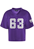 This remarkable K-State Wildcats Womens Boyfriend Fashion Football Jersey, showcasing a screen print team number on center chest and team name on upper back with school initals on left sleeve. Elevate your admiration for K-State Wildcats as you embrace this exceptional piece, designed to impress.