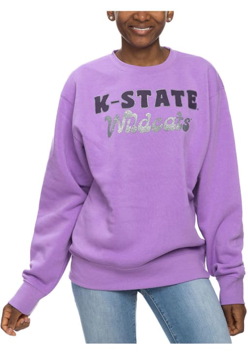 Gear up for the ultimate game day experience with this remarkable K-State WildcatsWomens Lavender Glitter Sport Crew Sweatshirt! Designed with the true fan in mind, this Wildcats Long Sleeve Sweatshirt features a applique team name on center chest. Stay warm and comfortable with this Womens K-State Wildcats Wildcats Crew Sweatshirt.