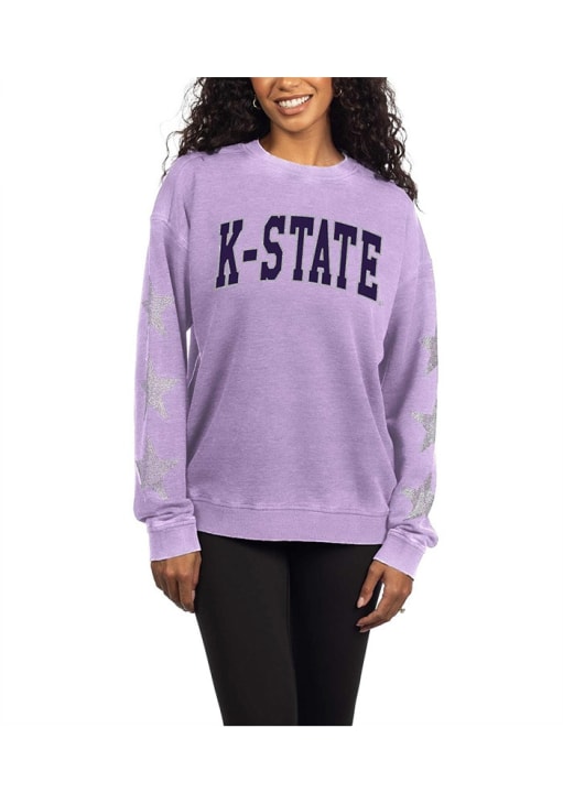 Gear up for the ultimate game day experience with this remarkable K-State WildcatsWomens Lavender Rhinestone Stars Campus Crew Sweatshirt! Designed with the true fan in mind, this Wildcats Long Sleeve Sweatshirt features a metallic team name on center chest with rhinestone stars on both arms. Stay warm and comfortable with this Womens K-State Wildcats Wildcats Crew Sweatshirt.